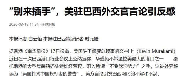 香港媒体征引报说念,好意思国驻巴西圣保罗总领事公然放话,他不但愿拉好意思最大口岸落入所谓“不受接待势力”。
