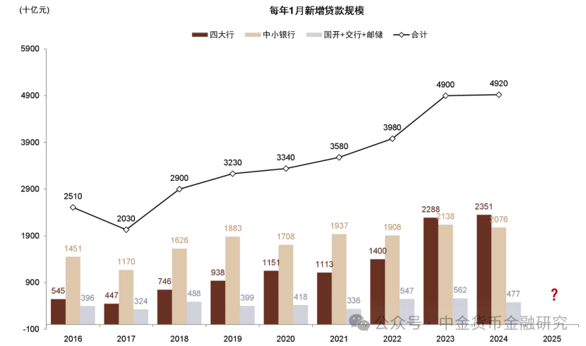 前瞻信贷开门红。咱们瞻望2025年1月“信贷开门红”新增贷款限度约4.5万亿元,比拟前年同期略降,但单月事贷新增限度有望排在历史前三位;瞻望新增社融限度6.7万亿元,略高于2024年的6.5万亿元,余额增速约8.0%,主要沟通以下身分: