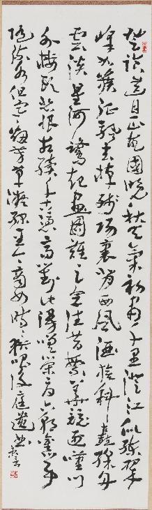本次展览精选60余件作品,篆、隶、楷、行、草五体皆全,以草书、行书为主,全面呈现其创作面庞与艺术水平。作品实验包括王安石、陶渊明、欧阳修、金农等东说念主诗文,以及毛泽东《沁园春・长沙》等,翰墨畅通,在收受传统的基础上有所窜改。展品中还有他花样湖湘气候与民风的自作诗,如草书《浯溪碑林纪游》、行书《怀化侗寨采风诗八首》等,展现湖南山水与乡土生存。