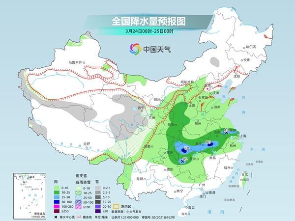 来日,西藏东部、青海东部、川西高原北部等地部分地区有小雪或雨夹雪。西北地区东部、山西南部、江淮南部和西部、江汉大部、江南北部、西南地区东部等地部分地区有中到大雨,其中,安徽中部、湖北东部和南部、湖南北部等地部分地区有暴雨。