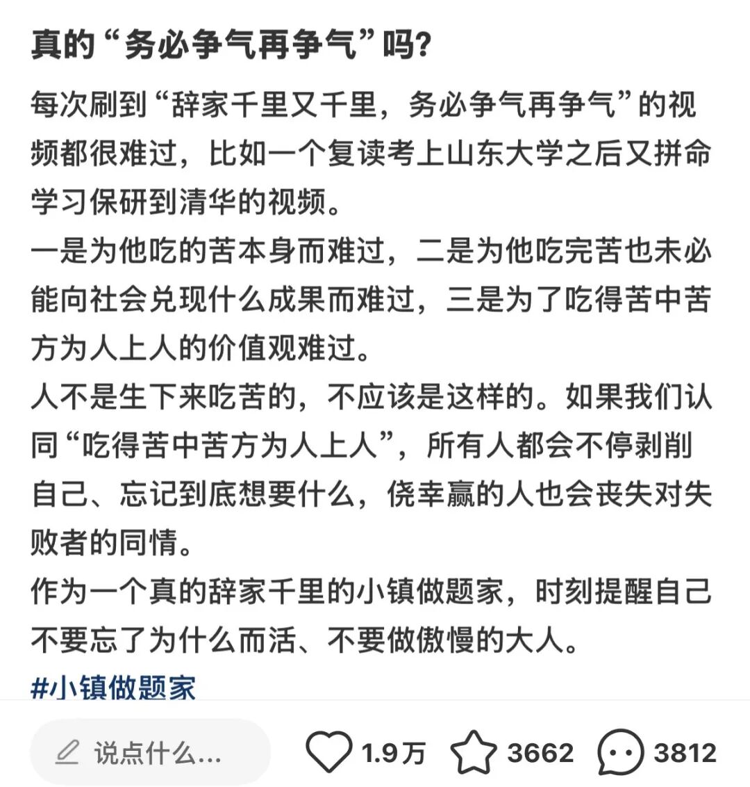 这么的故事,让我念念起近期酬酢媒体上很火的一句歌词「辞家沉又沉,务必争脸再争脸」。